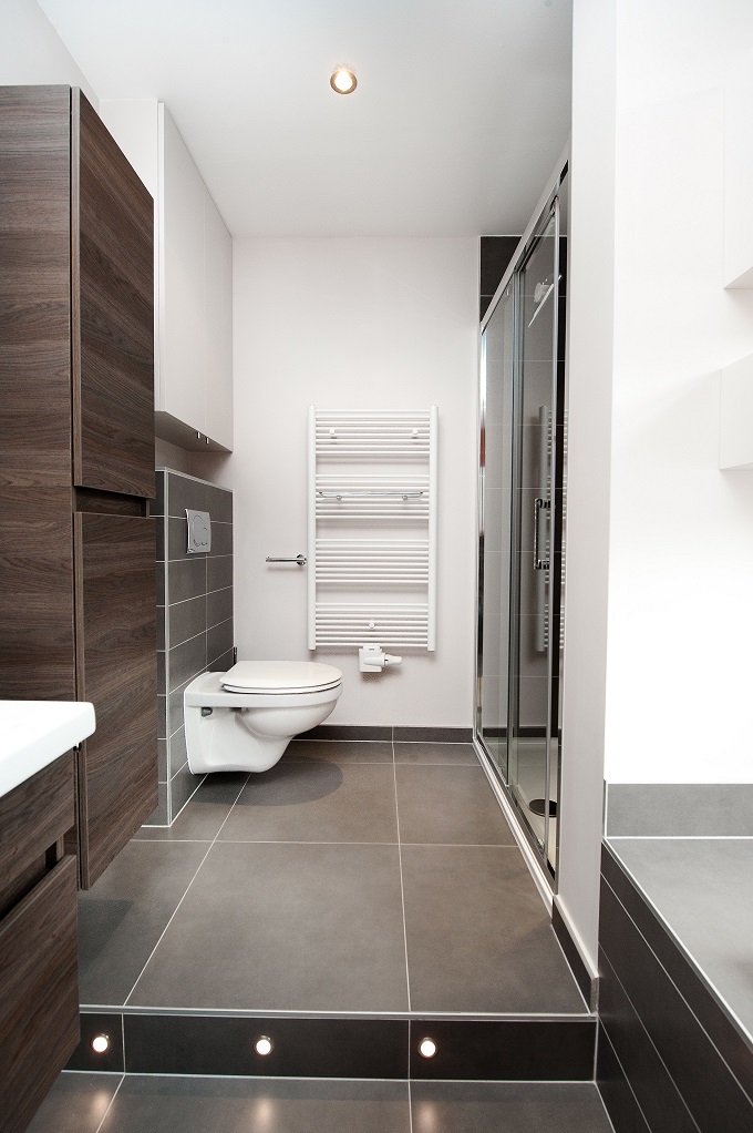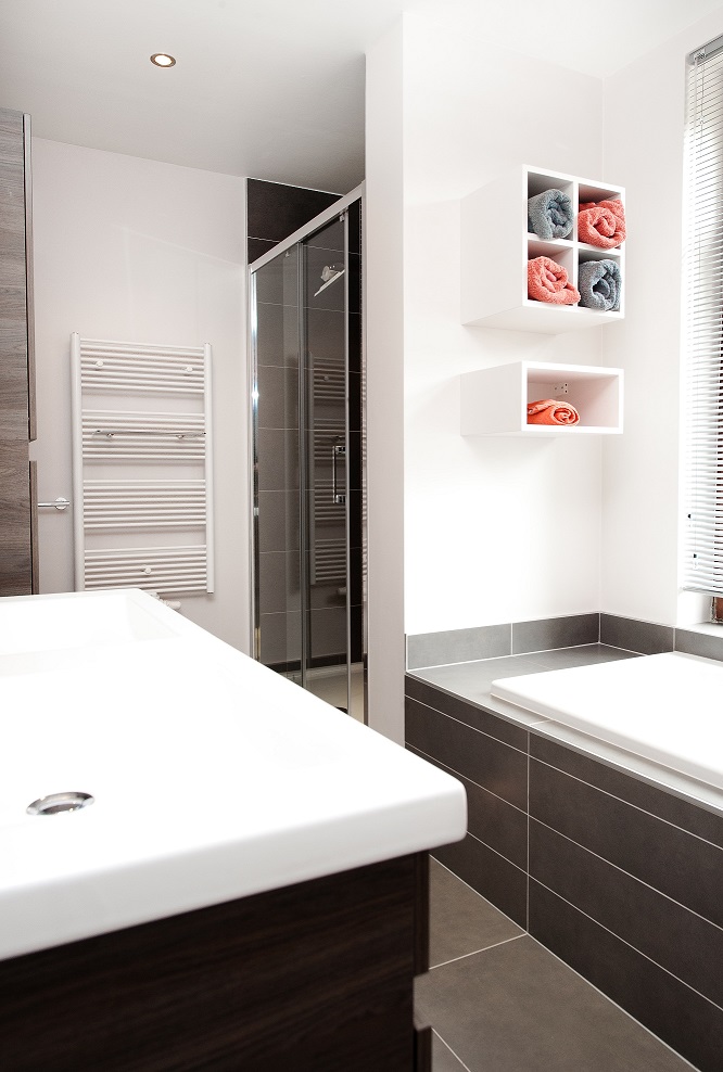 Pour cette famille de La Hulpe, l’objectif était d’optimiser une petite salle de bain afin d’y intégrer à la fois une baignoire et une douche italienne.