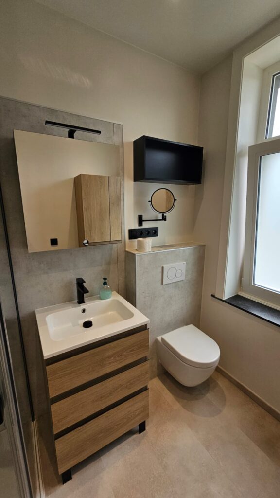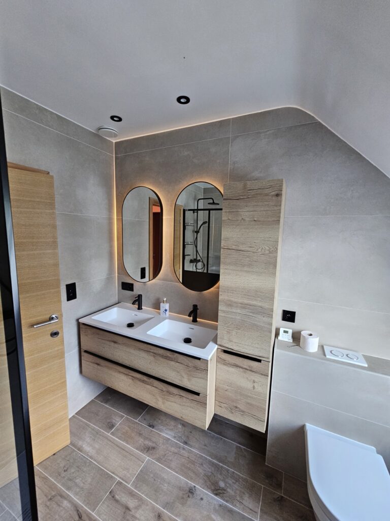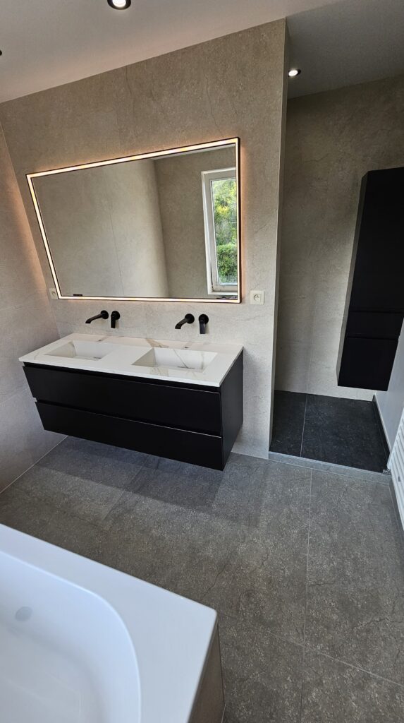 Pour ce projet à Kraainem, la salle de bain a été entièrement rénovée afin de combiner modernité, praticité et esthétisme.