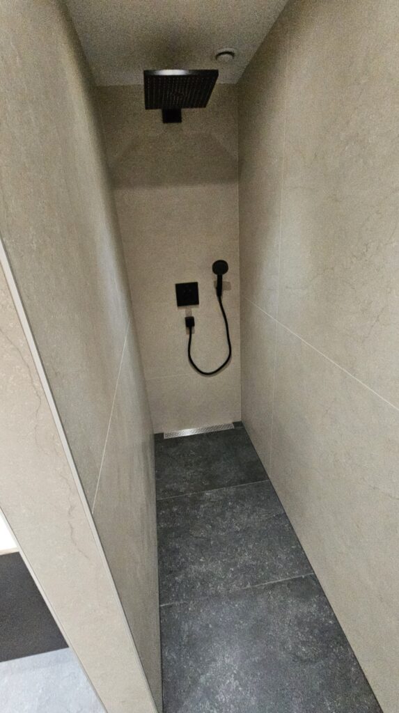 • Carrelage grand format au sol et aux murs, apportant élégance et sensation d’espace.