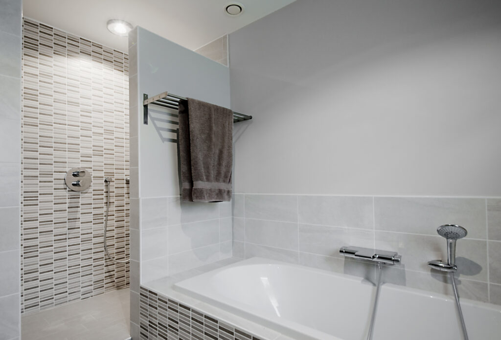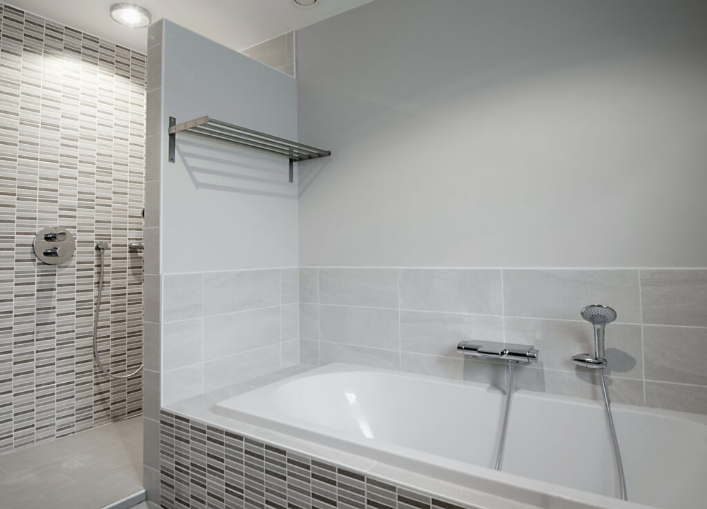 • Baignoire Villeroy & Boch, intégrée harmonieusement dans la nouvelle configuration.